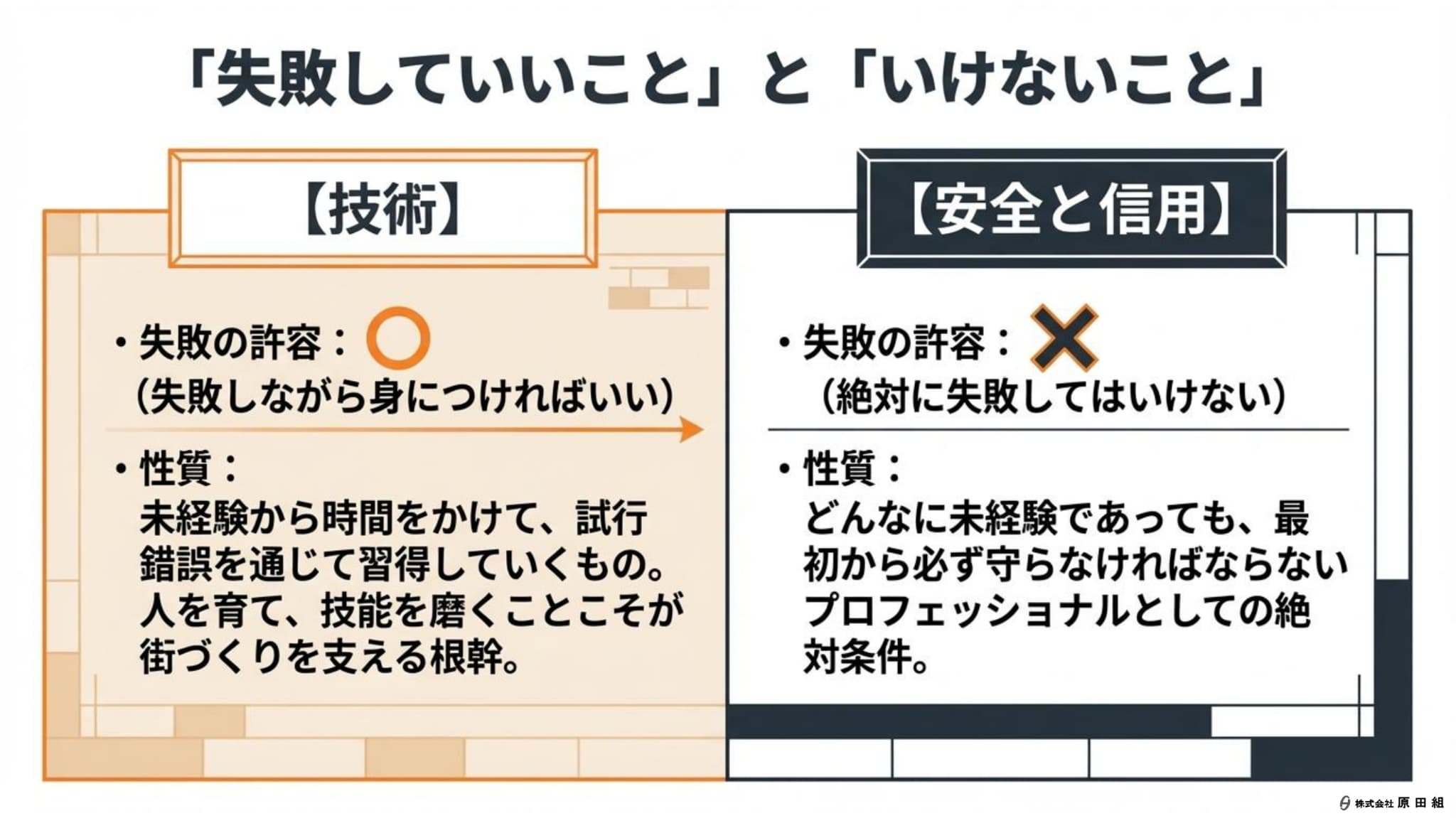 「失敗していいこと」と「してはいけないこと」を明確にしています。