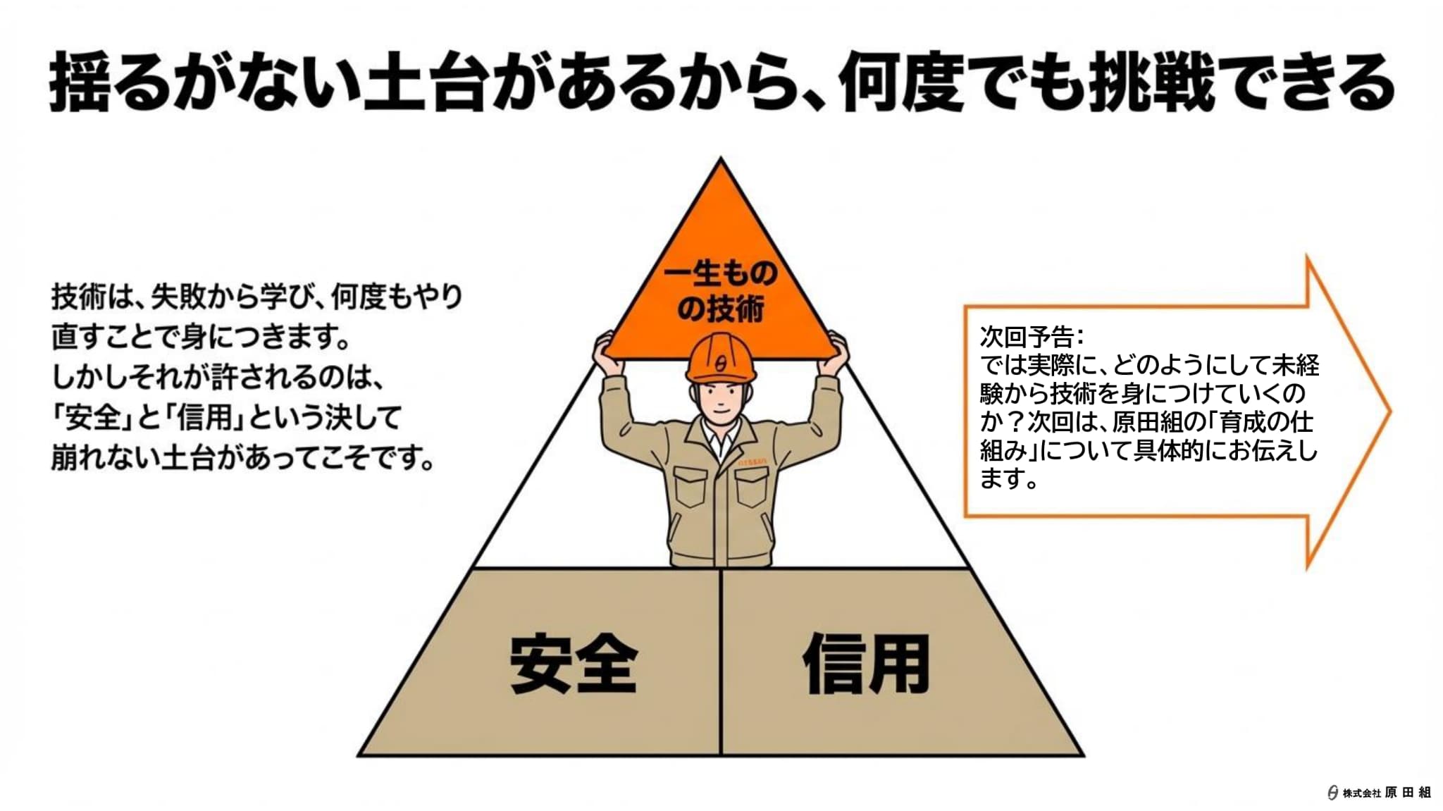 人を育て、技能を磨くことこそが、街づくりを支える仕事の根幹だと考えています。