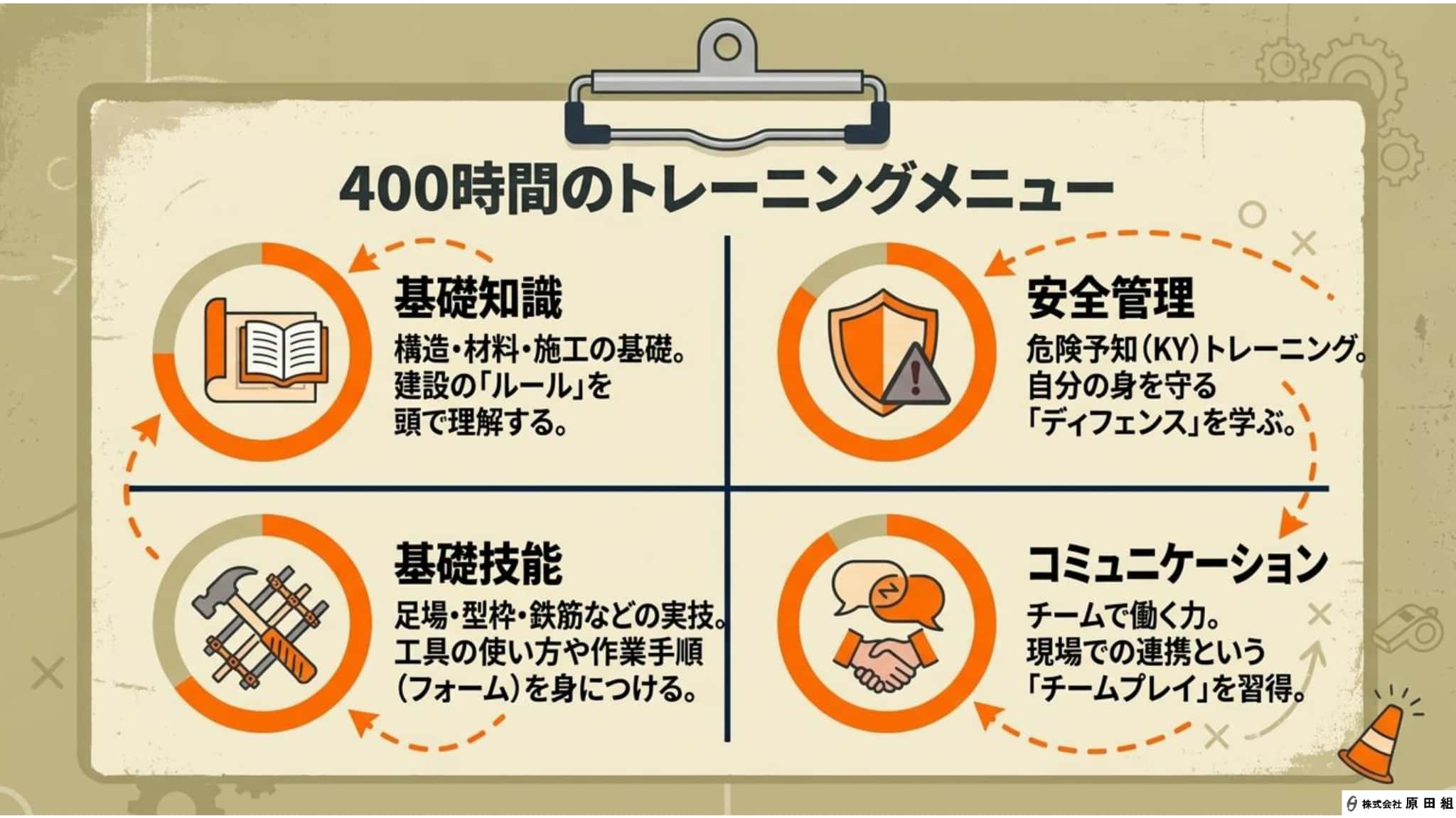 今回は、原田組でどのように未経験から技術を身につけていくのか、