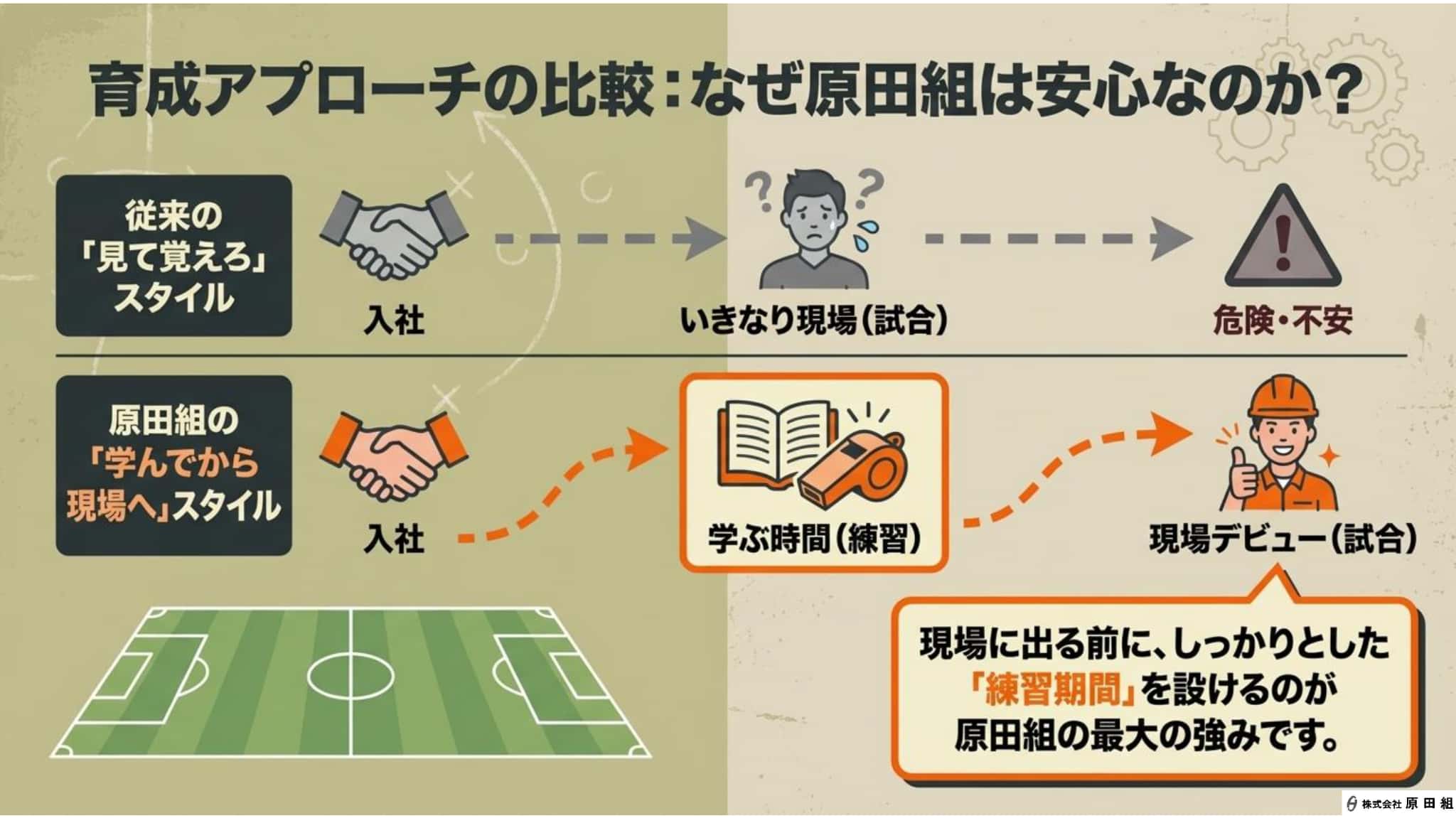 【原田組の今とこれから #5】未経験からプロへ|原田組の育成の仕組み